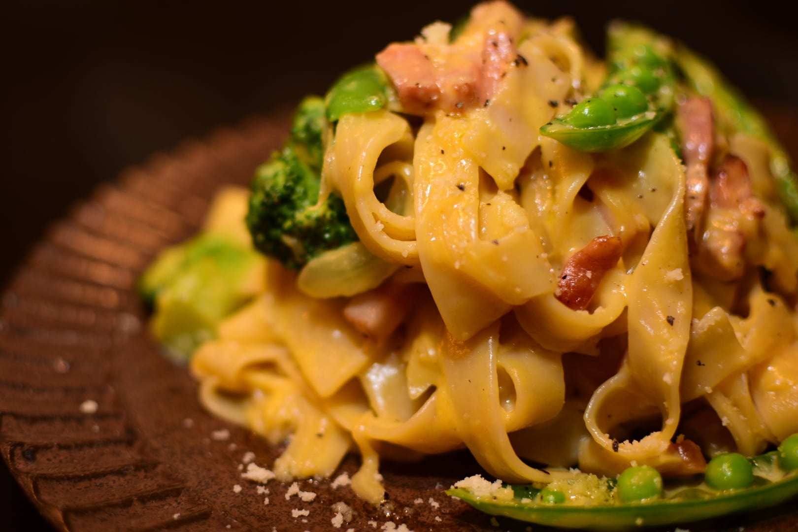 パスタのゆで時間はお使いの鍋等の大きさや火力によって違いってきますが3分から4分が目安です。途中で様子を見ながらゆでることをオススメします。